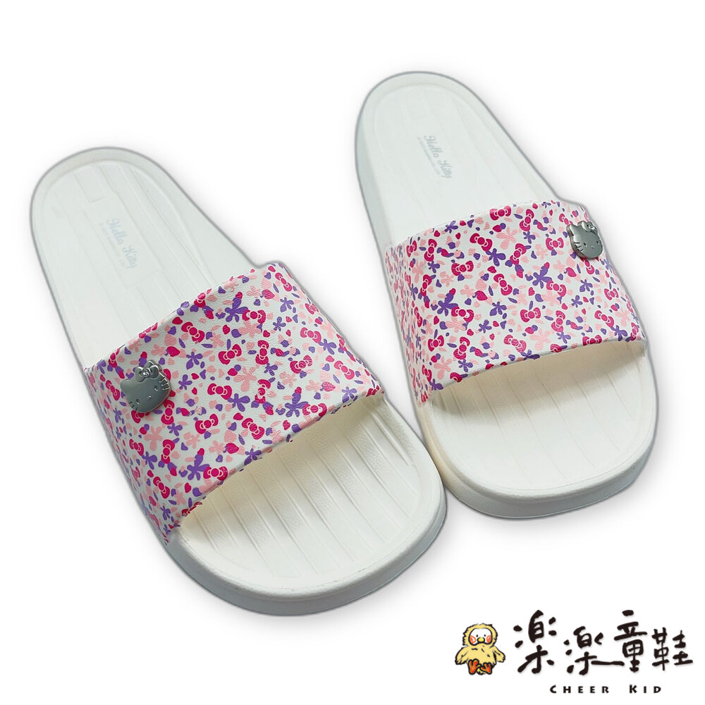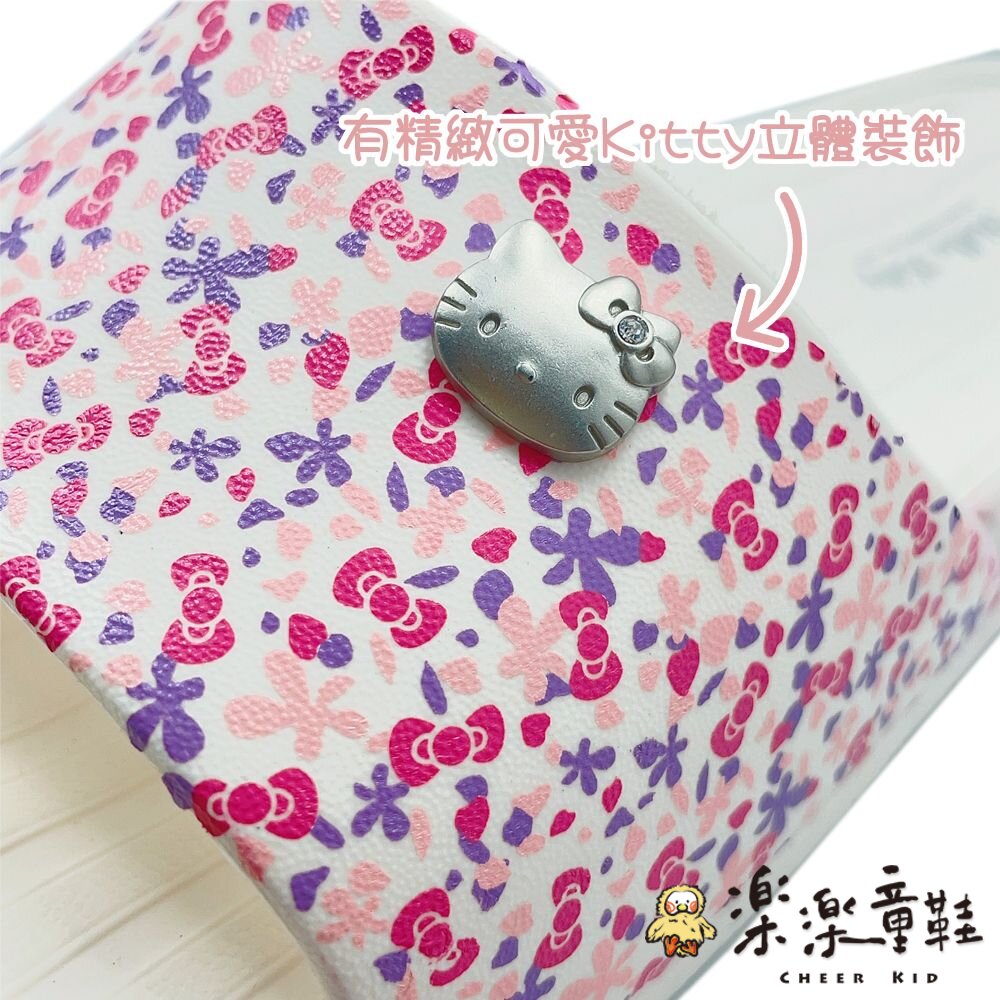 鞋面有可愛的Kitty扣飾搭配小碎花