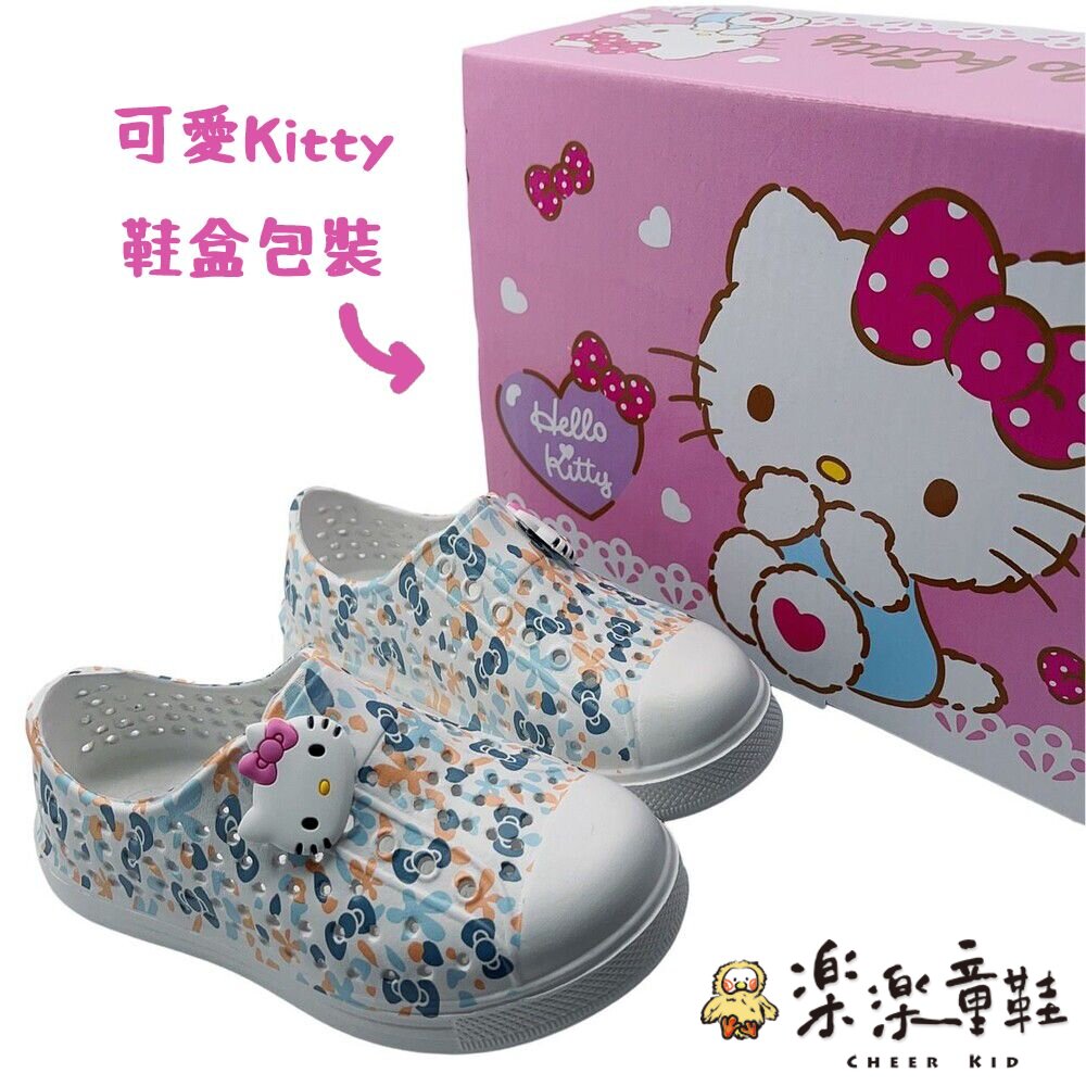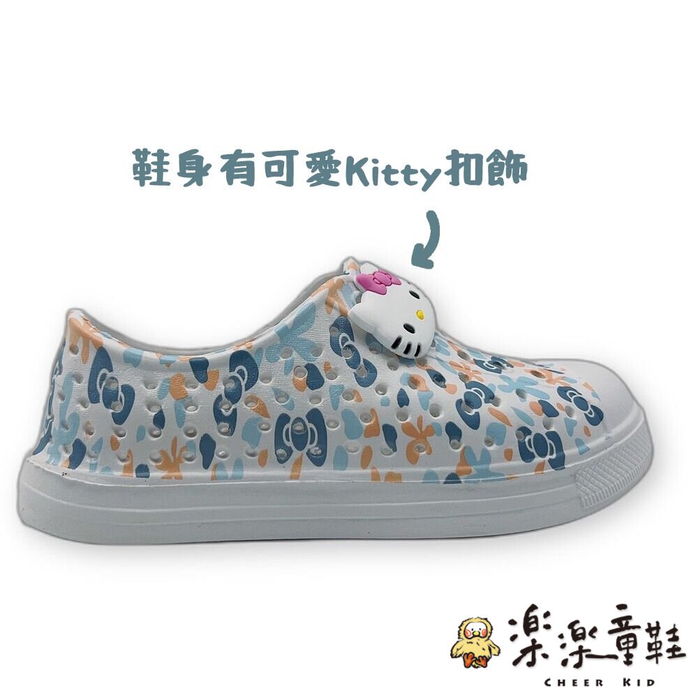 鞋面有可愛的Kitty圖案立體扣飾