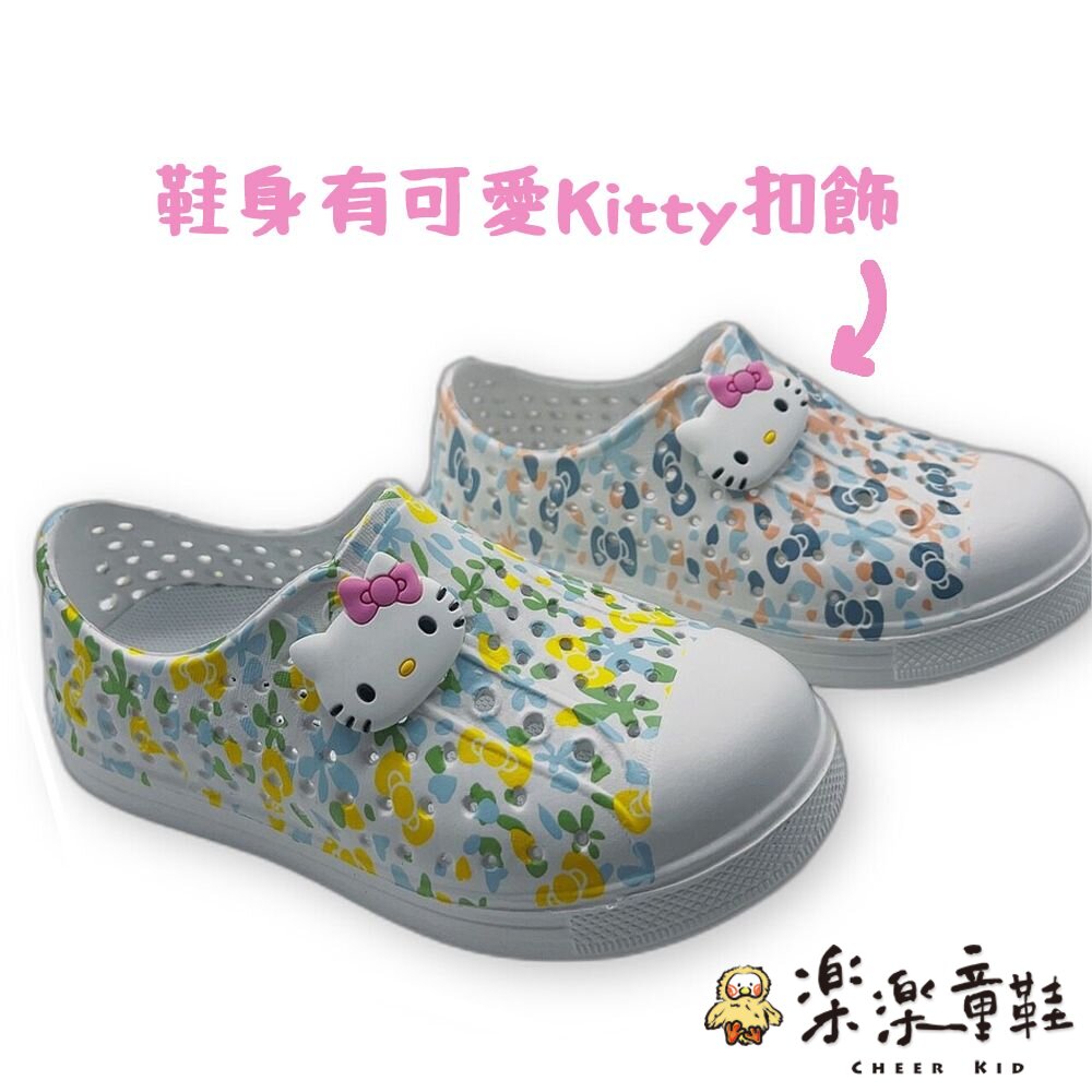 鞋面有可愛的Kitty圖案立體扣飾